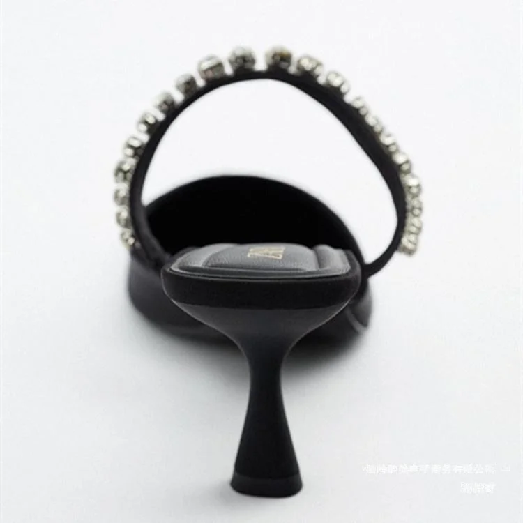 Women's High Heel Pointed Toe Rhinestone Thin Heel PU Upper Rubber Outsole Summer Fashion Slippers